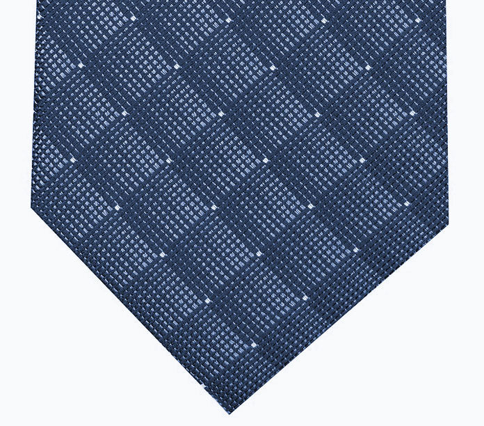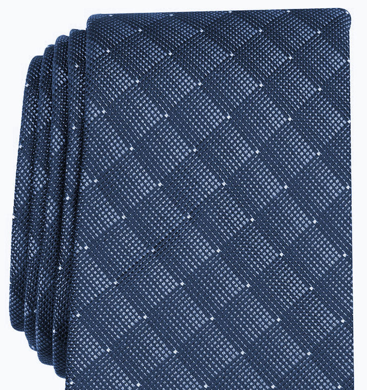 Slim design|2-3/4" wide|Geometric pattern|Polyester/silk|Dry clean|Imported