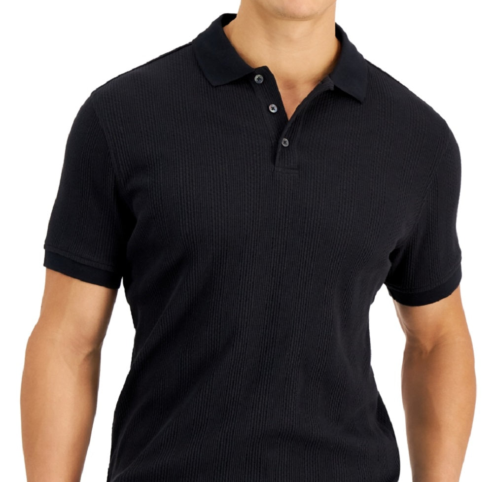 Alfani Men's Stretch Textured Stripe Jacquard Polo Shirt Black Size X-Large