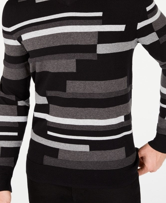Alfani Men's Textured Striped V Neck Sweater Black Size Large