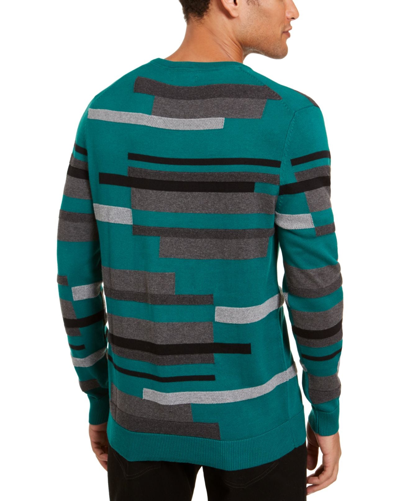 Alfani Men's Textured Striped V-Neck Sweater Green Size Large