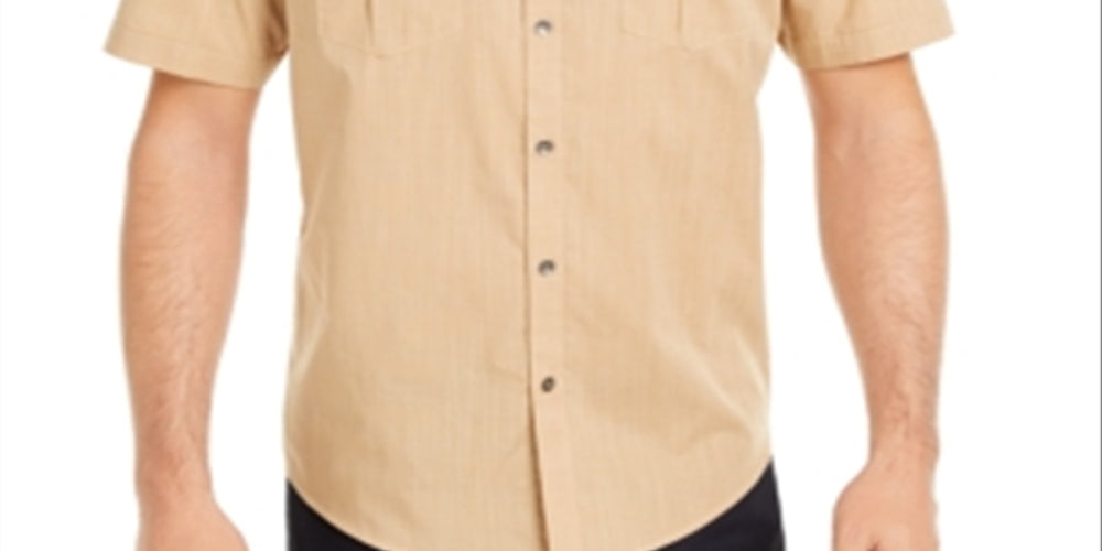 Alfani Men's Warren Textured Short Sleeve Shirt Caramel Size XXX-Large