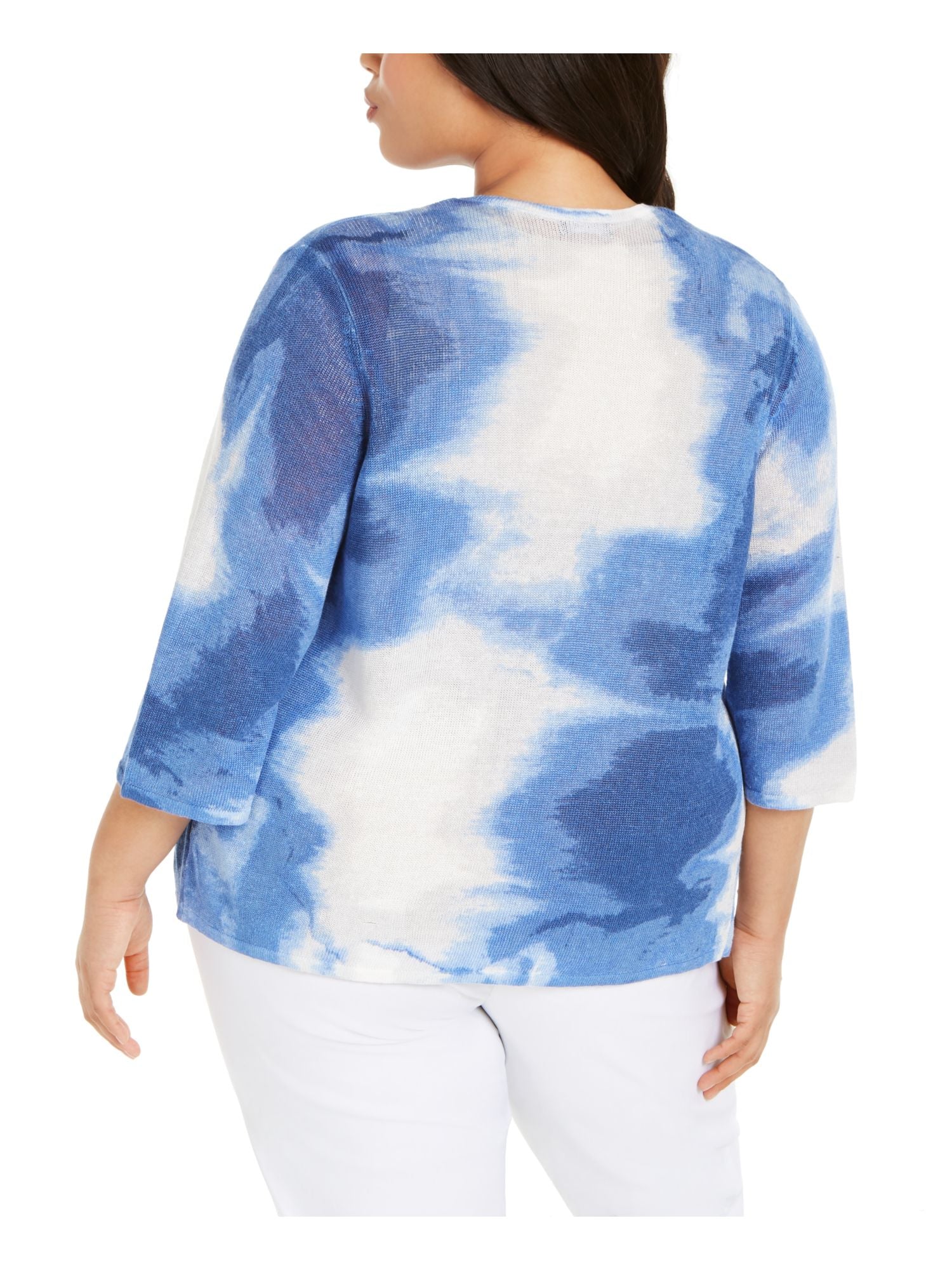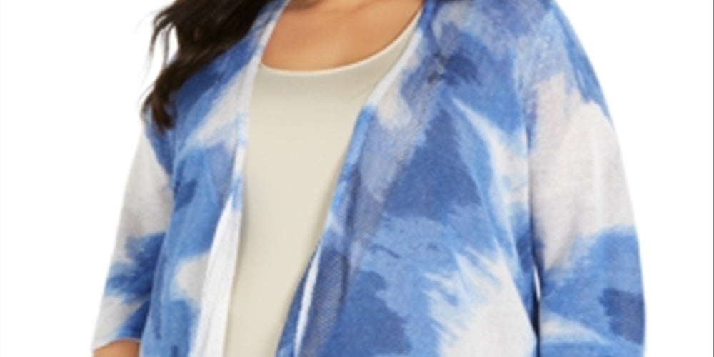 Alfani Women's Acid Wash 3/4 Sleeve Open Cardigan Sweater Blue Size 0X
