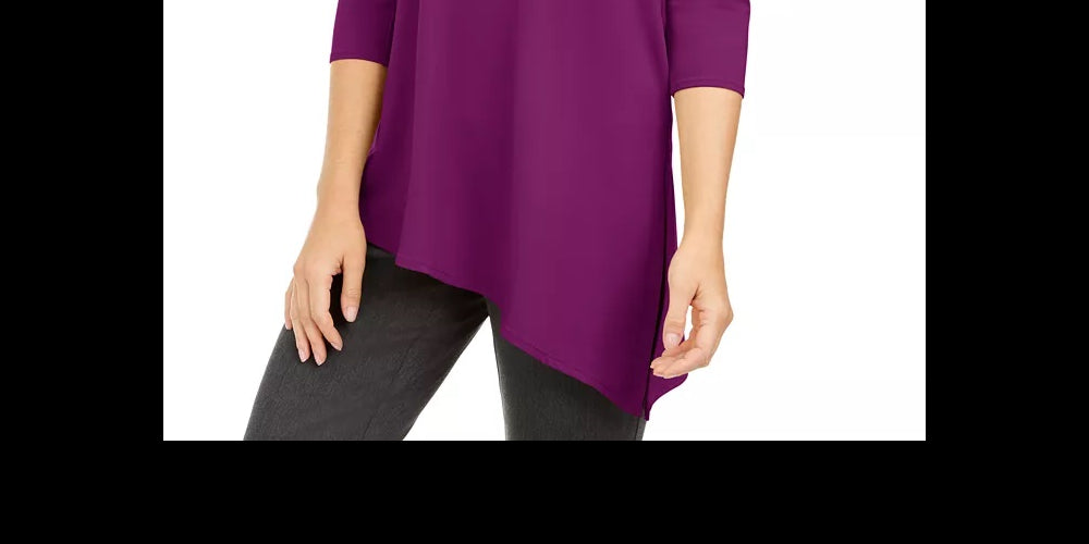 Approx. 26 long|Asymmetrical neckline|Cutouts at shoulders; asymmetrical hem|3/4-sleeves