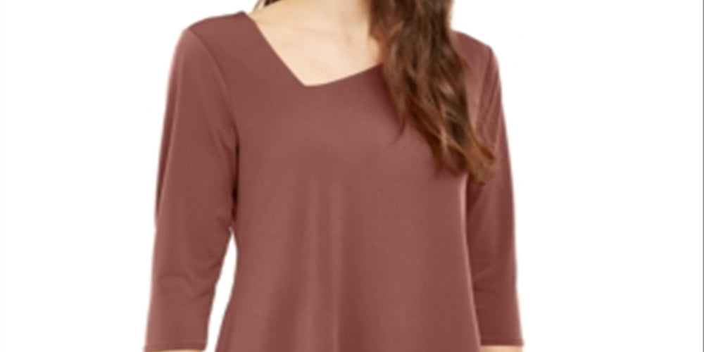 Alfani Women's Asymmetrical Hem 3/4 Sleeve Top Pink Size Small