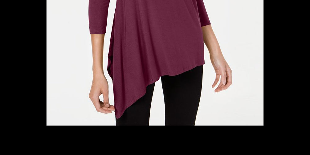 An essential silhouette gets a chic makeover with Alfani's asymmetrical-hem top. Dramatically longer to one side| the hem drapes beautifully around a long vent.| Crew neckline| Asymmetrical hem is longer and vented on one side| Easy fit; hits at hip|