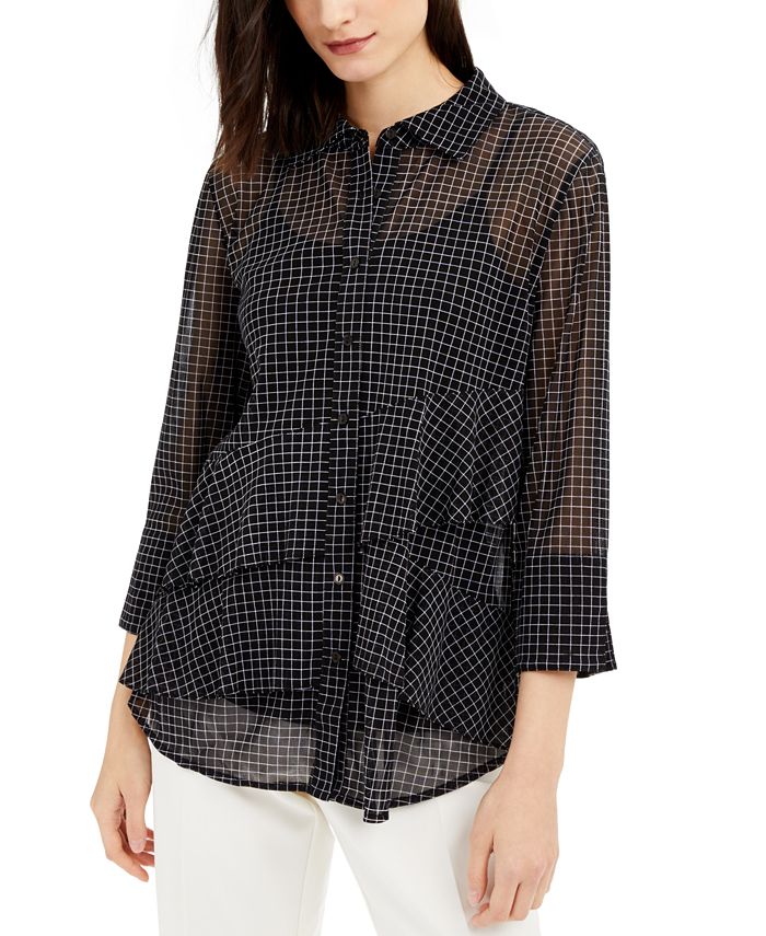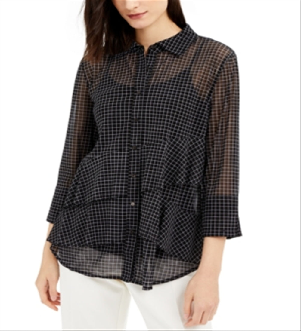Alfani Women's Asymmetrical Tiered Mesh Top Black Size S