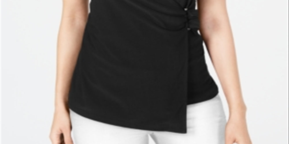 Alfani Women's Asymmetrical Wrap Top Black Size Petite L