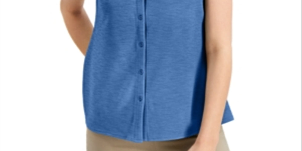 Alfani Women's Collar Sleeveless Button Down Top Blue Size XX-Large