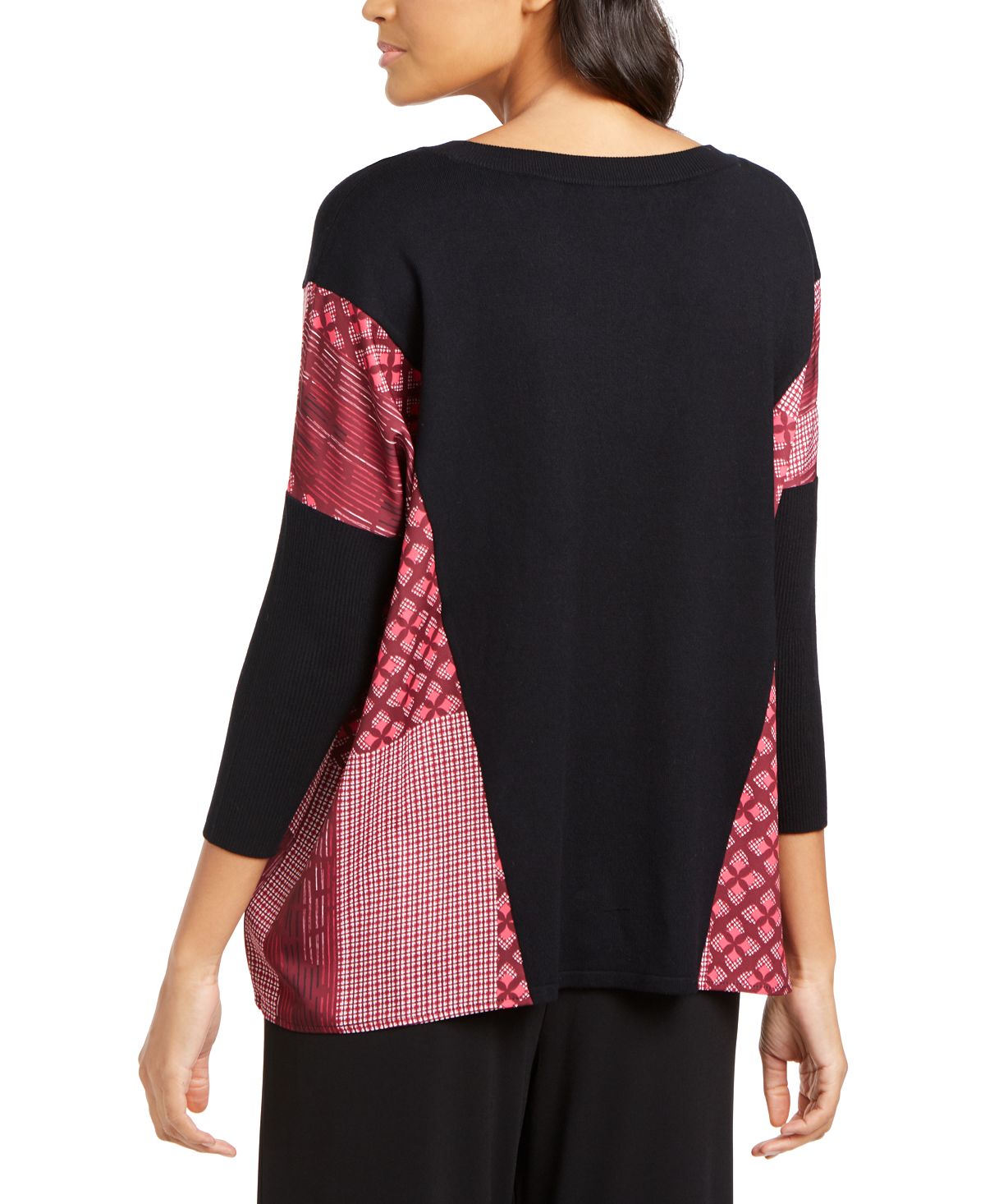 Contrast-trimsides adds an eye-catching detail to Alfani's scoop-neck sweater| bringing a contemporary feel to the 3/4-sleeve style. | Hits at hips; approx. 25-7/8 long| Scoop neckline| Contrast panels at sides| 3/4-sleeves
