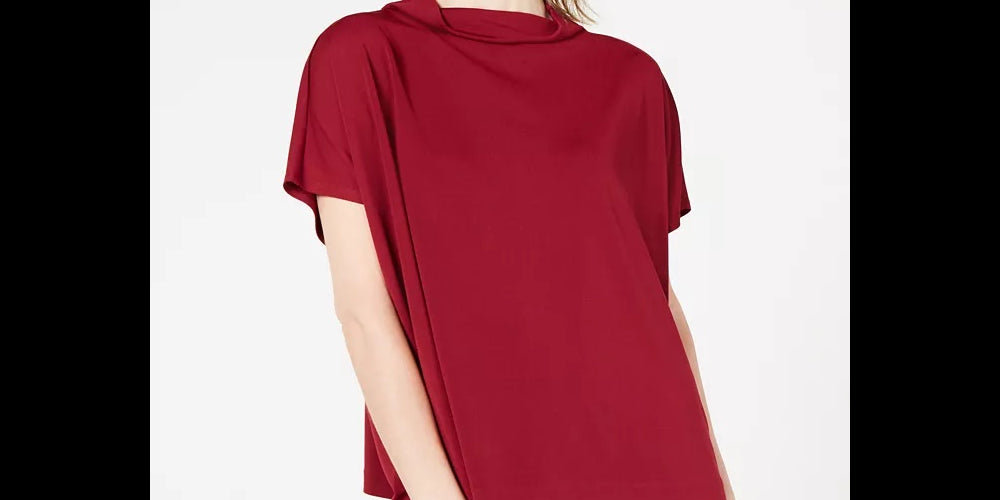 Alfani Women's Cowl Mock-Neck Top Wine Size Petite Small