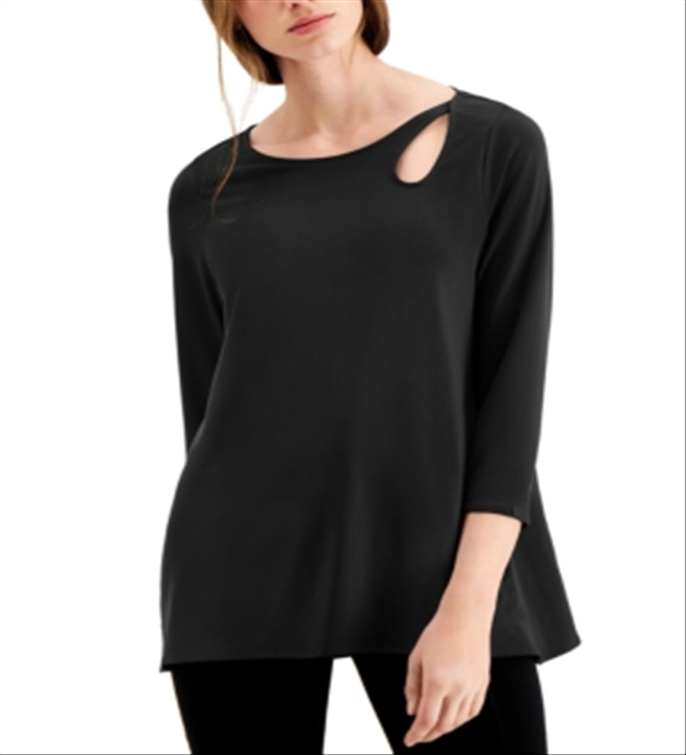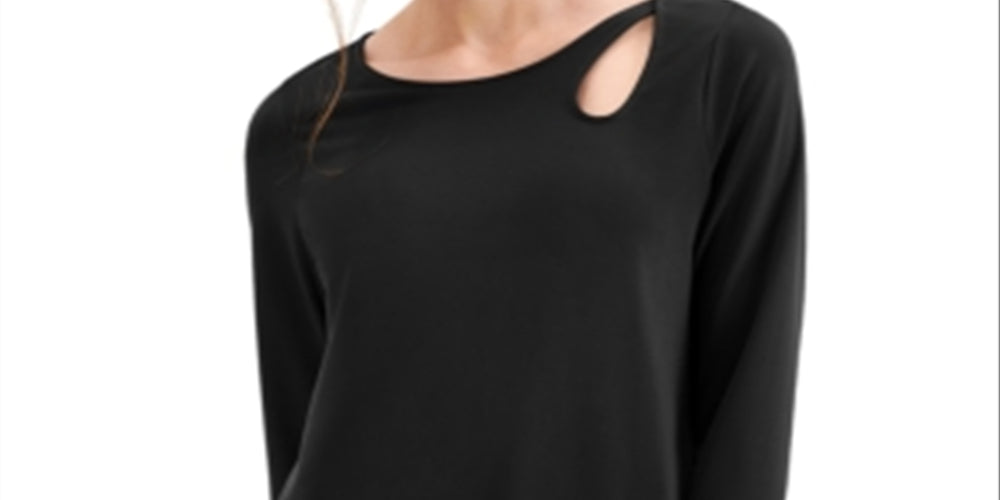 Alfani Women's Cut Out Crewneck Blouse Black Size L