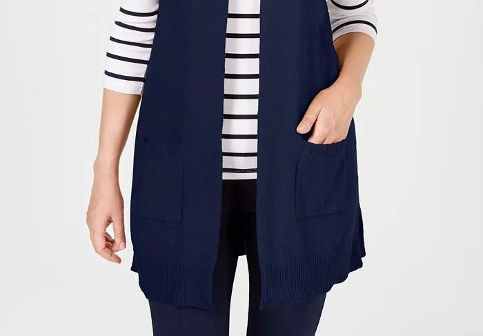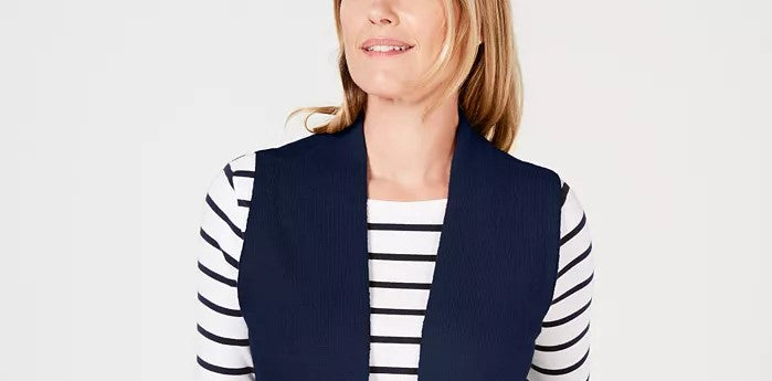 Approx. 22-1/2" long|Crewneck|3/4-sleeves|Polyester/metallic woven fibers|Machine washable