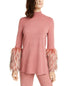 Alfani Women's Faux Fur Cuff Mock Neck Sweater Pink Size Small