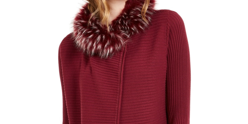 Alfani Women's Faux Fur Trim Convertible Cardigan Red Size Petite X-Large