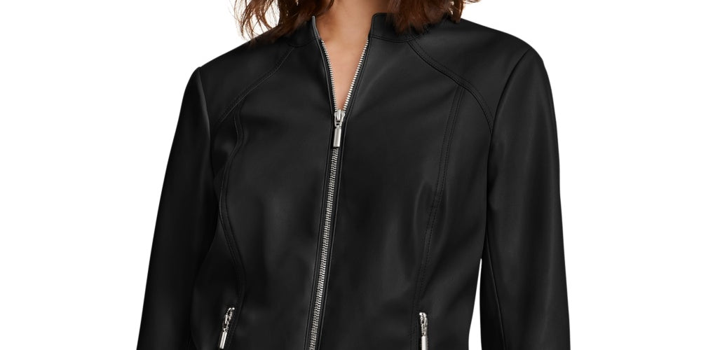 Alfani Women's Faux-Leather Moto Jacket Black Size Small
