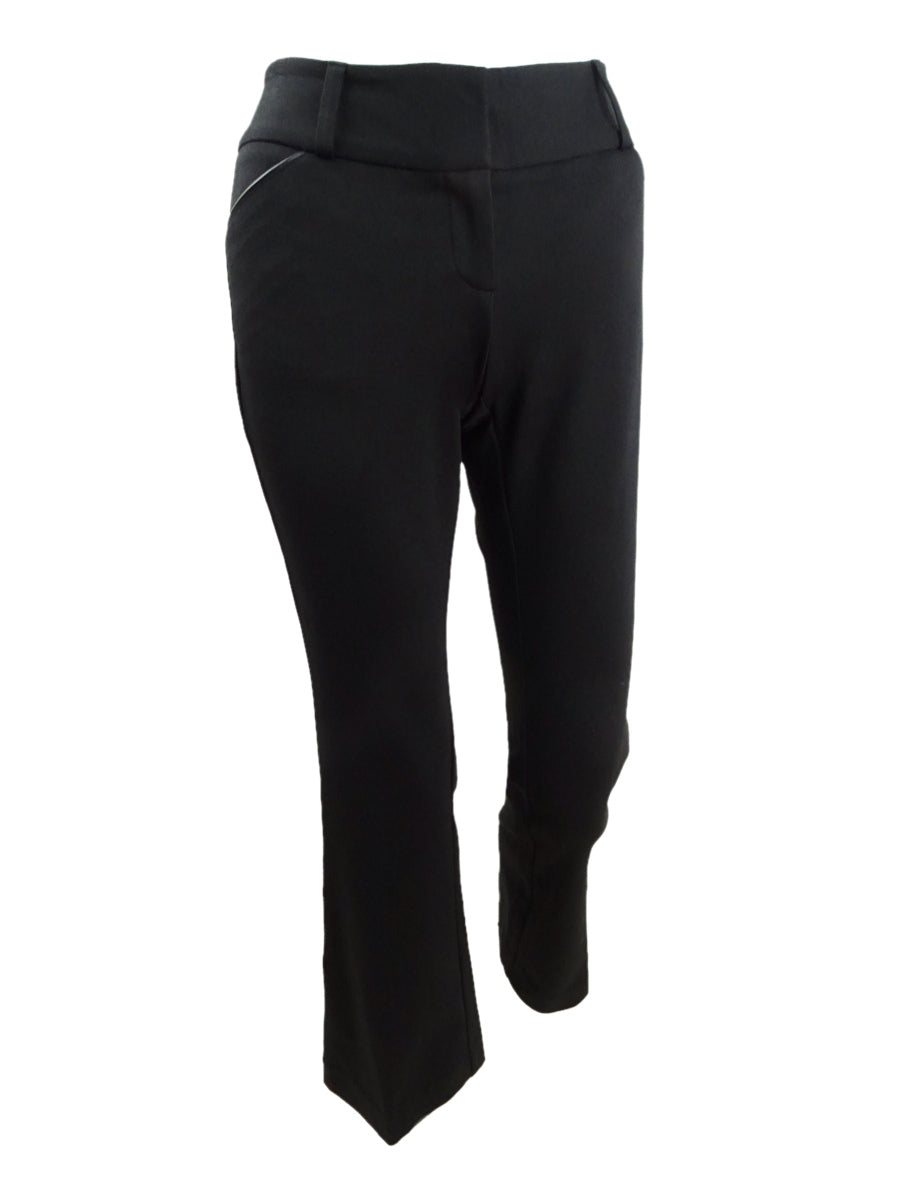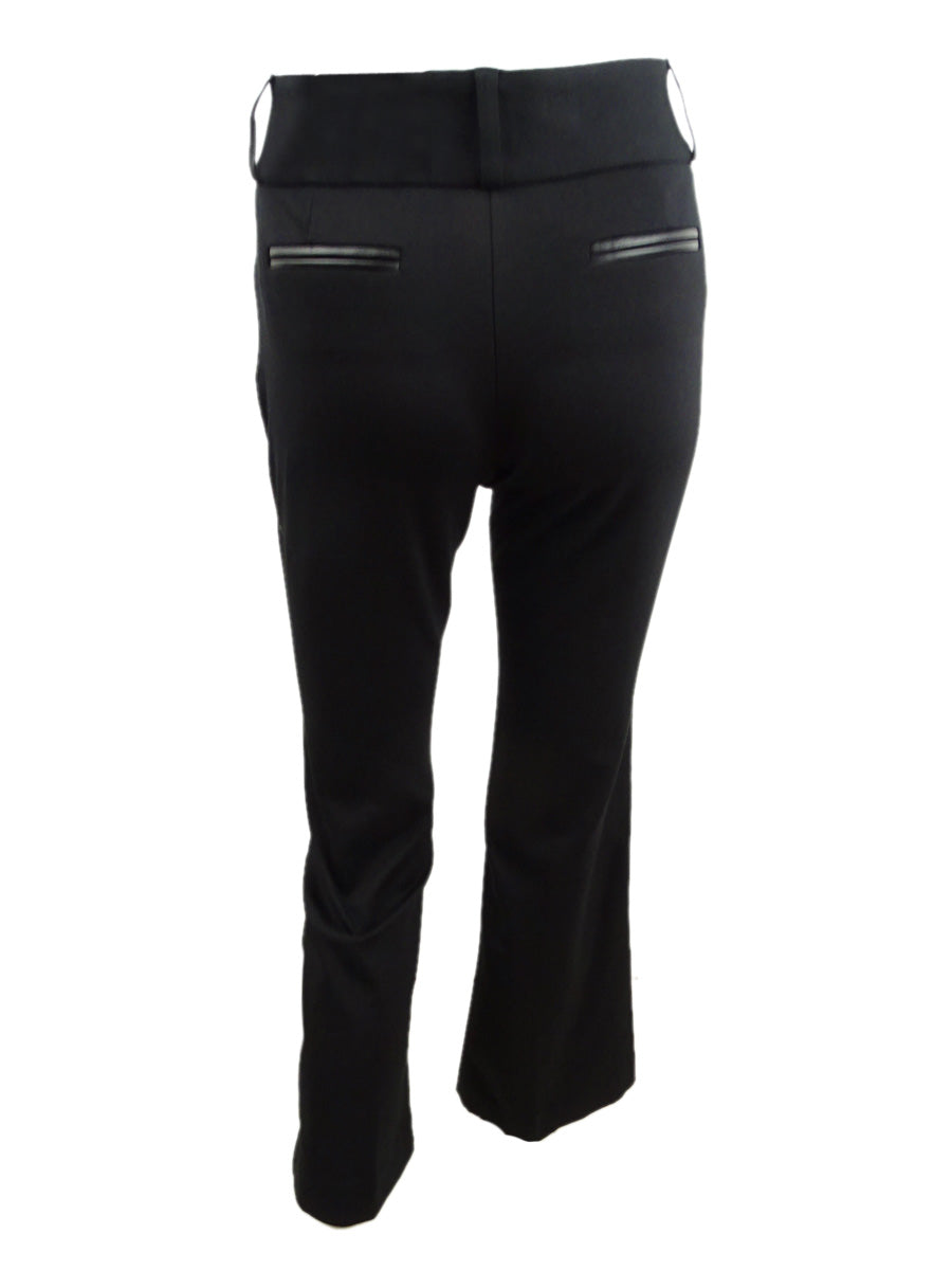 Alfani Women's Faux Leather Trim Wide Leg Trousers Black Size 14X4