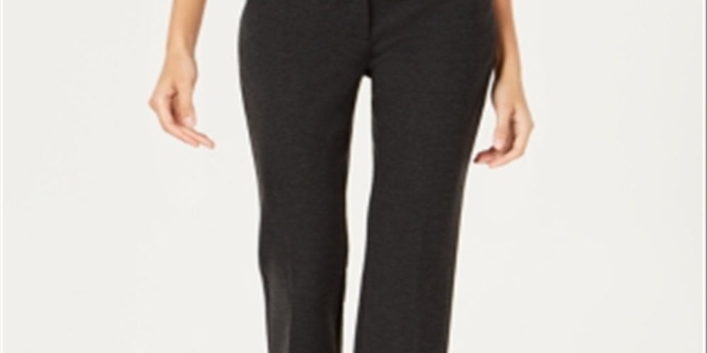 Low rise; waistband sits at hips| Wide leg| Front zipper and hook-and-eye closure| Two pockets at front with fake leather trim; pockets at back hips| Approximate inseam; 30-1/2