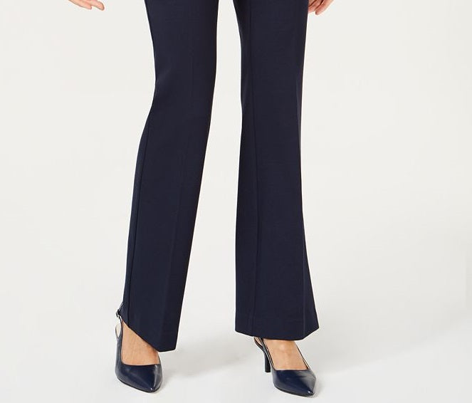 Alfani Women's Faux Leather Trim Wide Leg Trousers Blue Size 16X3