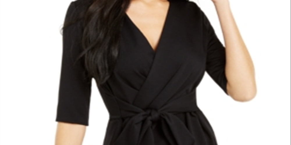 Alfani Women's Faux Wrap Elbow Sleeve Top Black Size Petite S