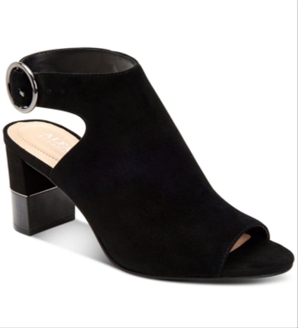 Alfani Womens Floriss Suede Peep Toe Casual Ankle Strap Sandals Black Size 9.5