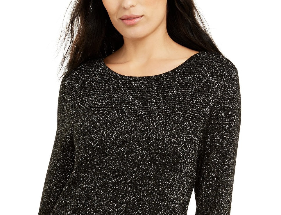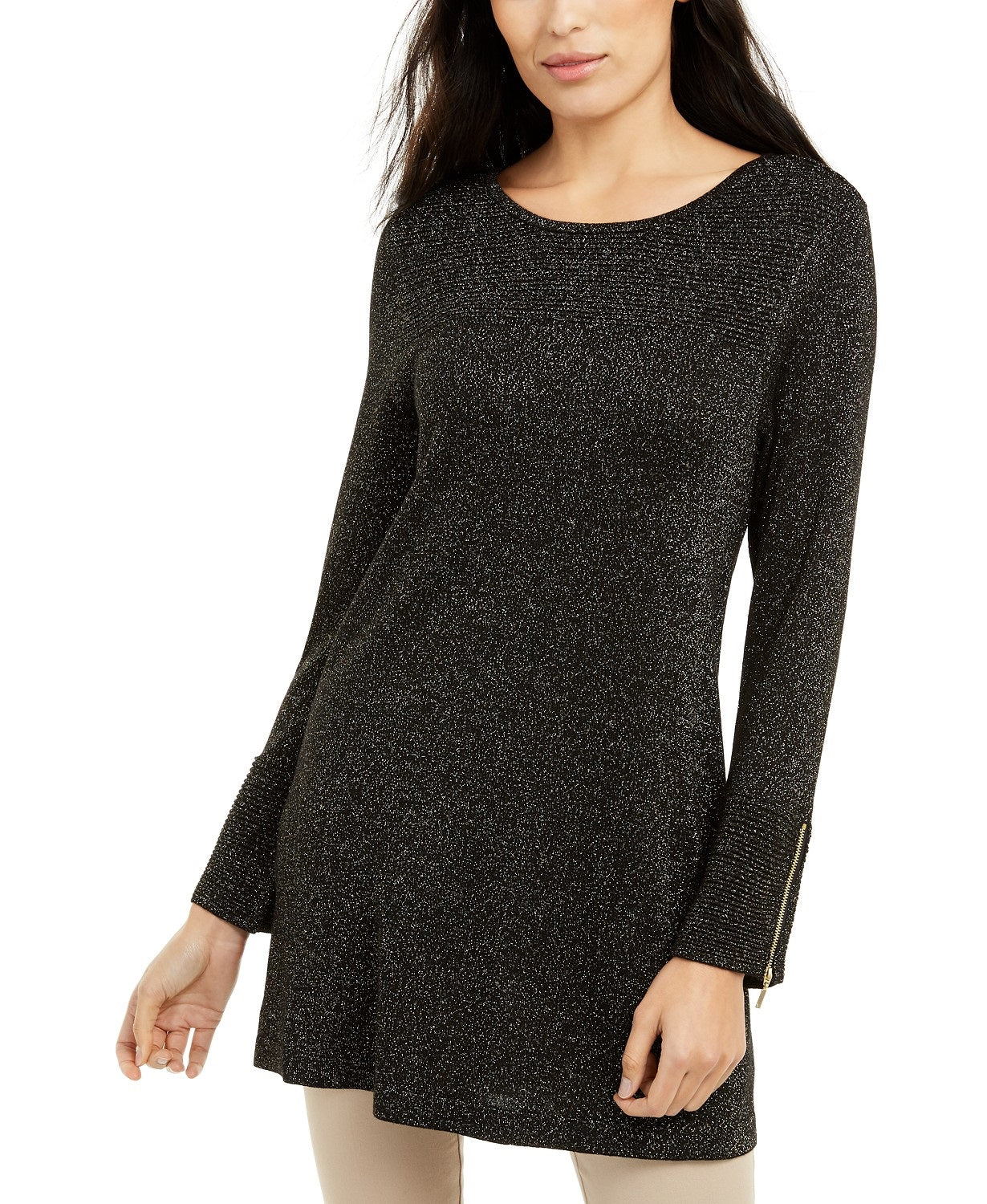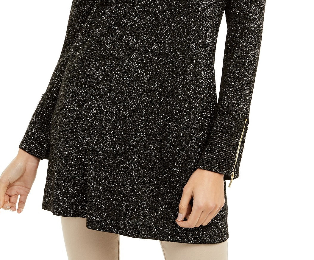 Alfani Women's Glitter-Knit Tunic Sweater Black/ Gold Lrx Size Extra Large