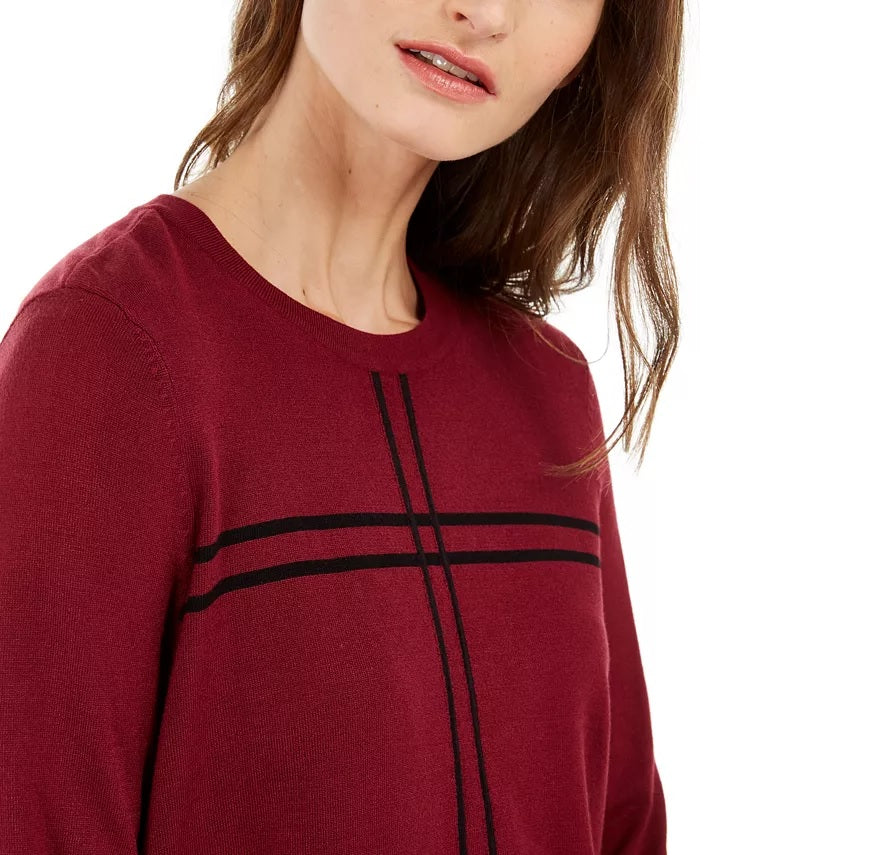 Alfani Women's Grid-Pattern Sweater Red Size Small