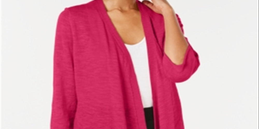 Alfani Women's Linen Open Front Cardigan Pink Size Large