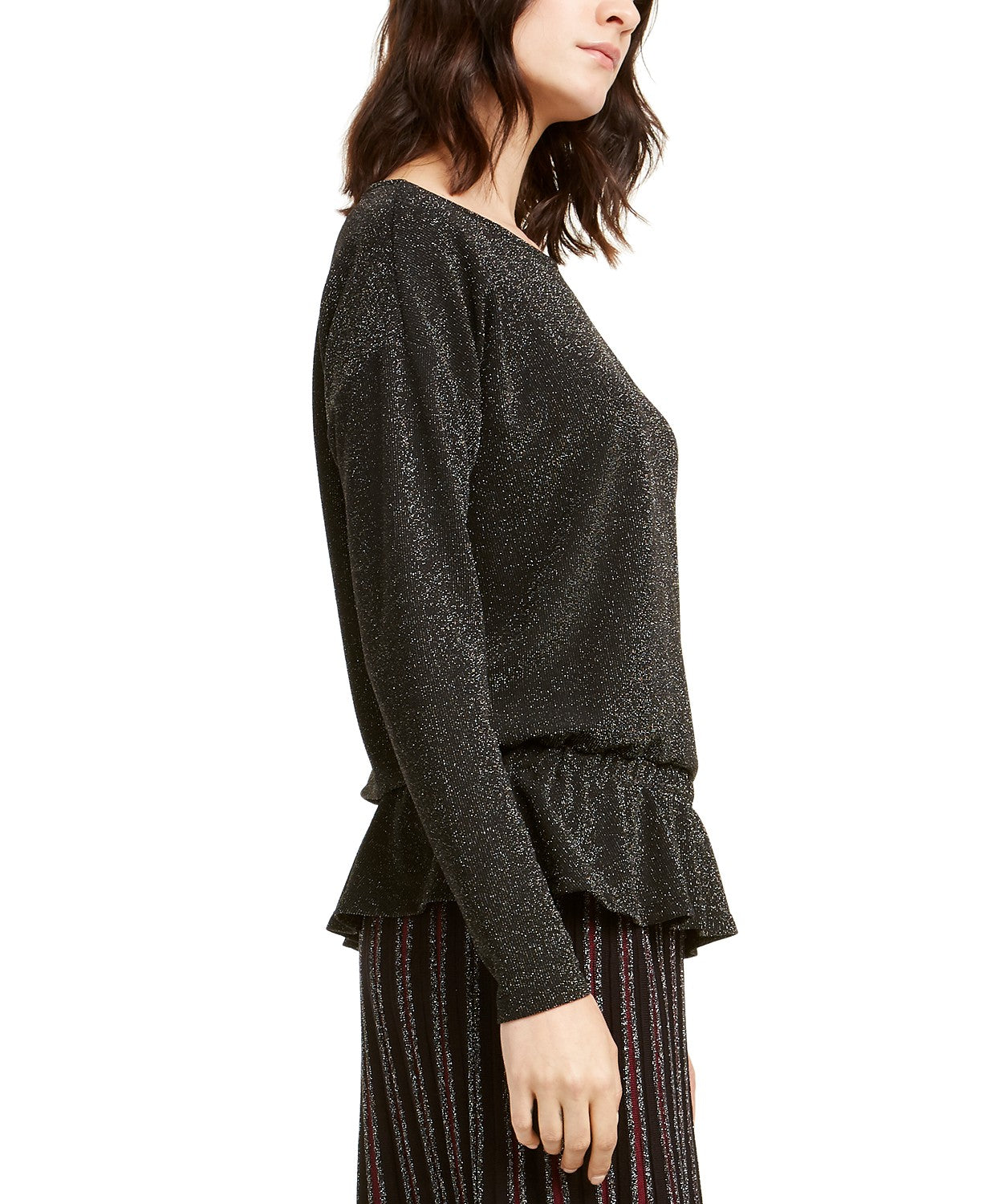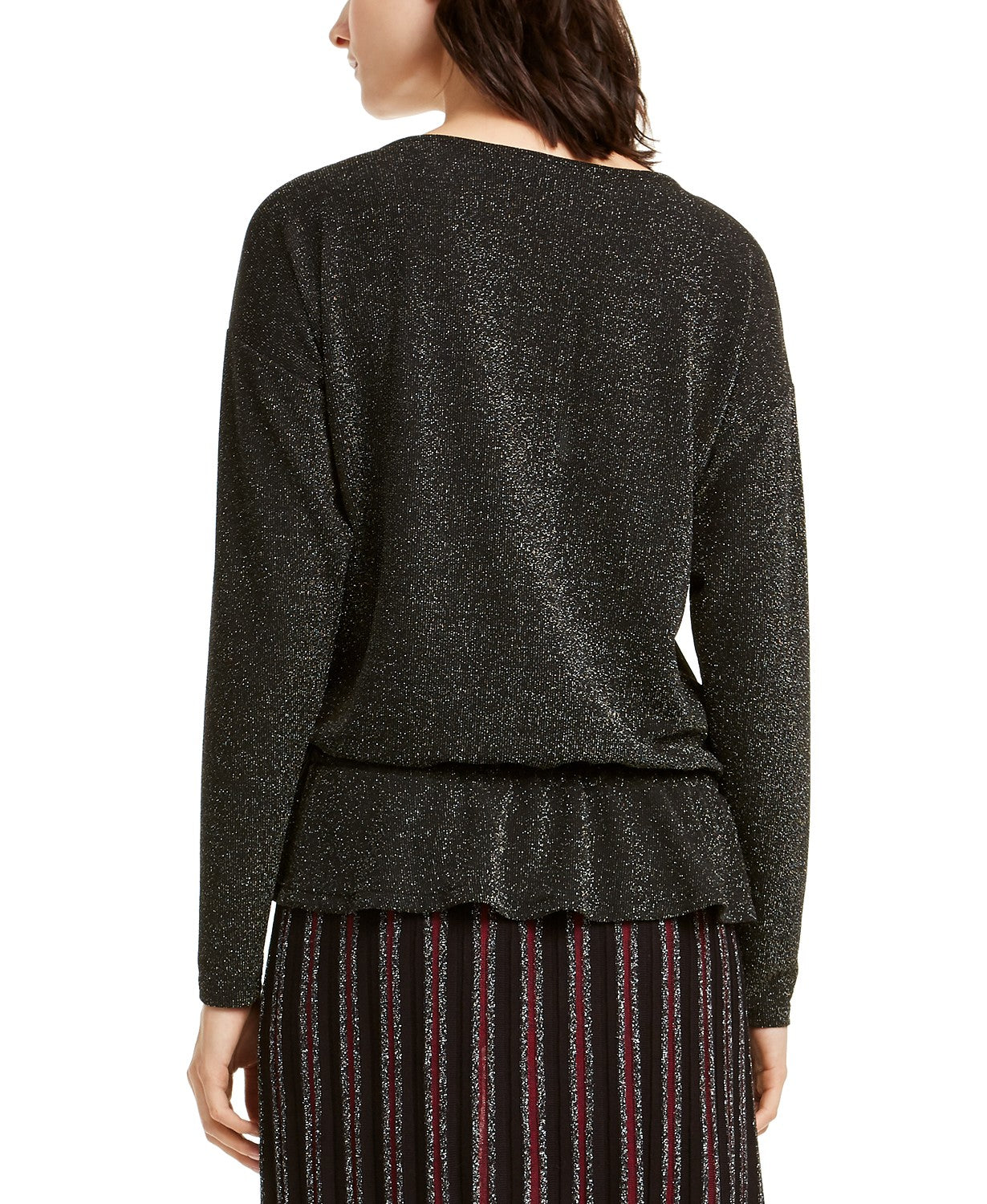 Alfani Women's Metallic Peplum Top Black Size Medium
