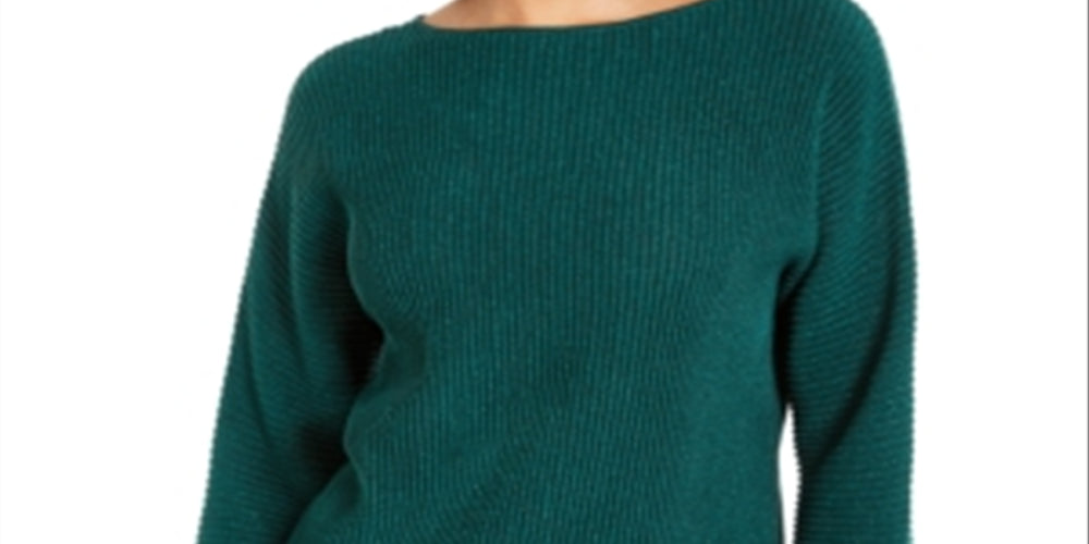Alfani Women's Metallic Ribbed-Knit Sweater Green Size Small