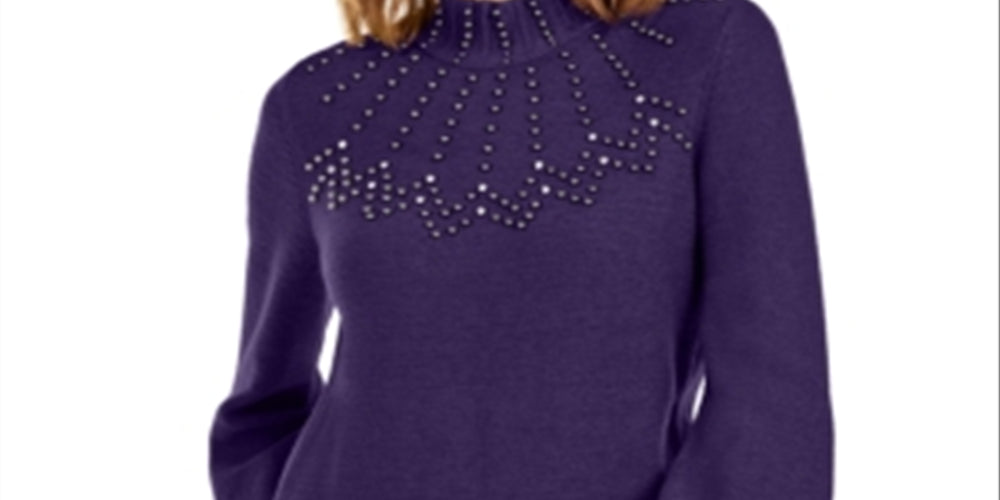 Alfani Women's Mock Neck Embellished Sweater Purple Size Petite XL