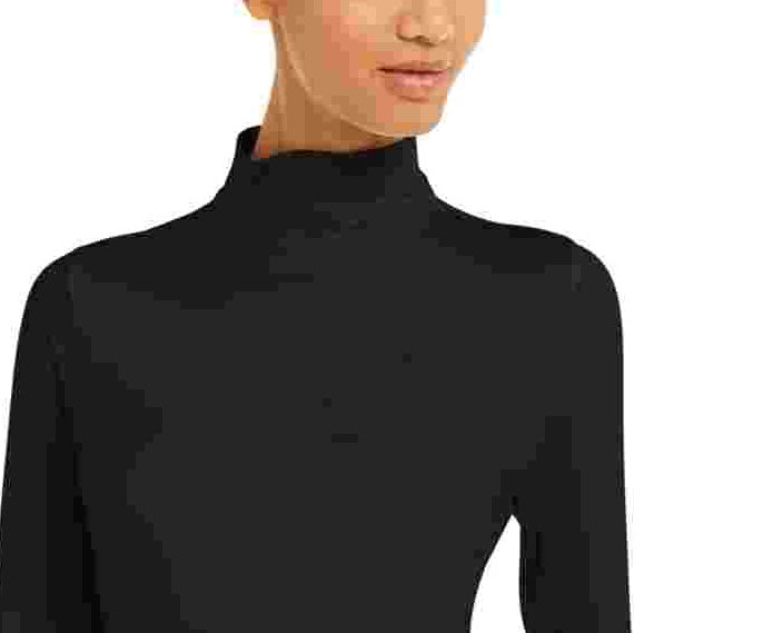 Approx. 25-3/4" long|Mock-neck|Rayon/spandex|Machine washable|Imported