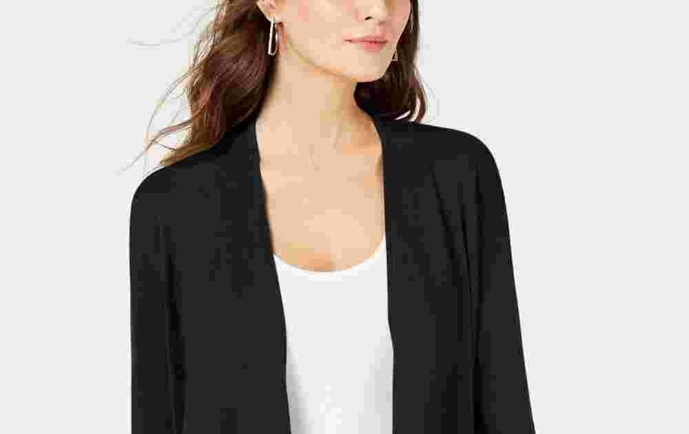 Alfani Women's Open Front Tie Sleeve Cardigan Sweater Black Size X-Small