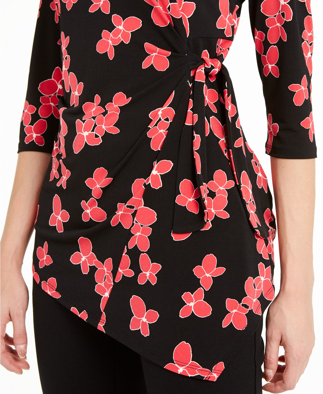 Alfani Women's Petite Floral-Print Side-Tie Top Black Size Large