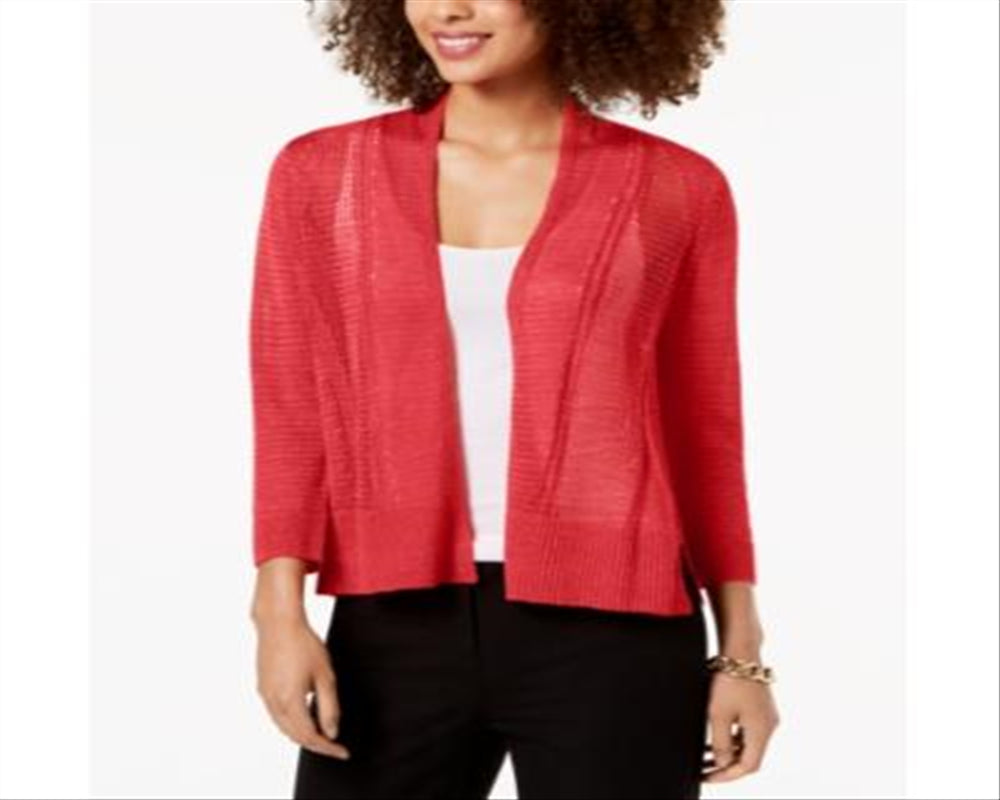 add a sheer| stylish layer to your daily looks with this petite open-front cardigan| finished with an elegant mix of stitches| from alfani