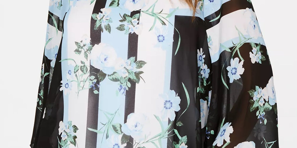 Alfani Women's Petite Printed Angel-Sleeve Blouse Navy Size Petite X-Large