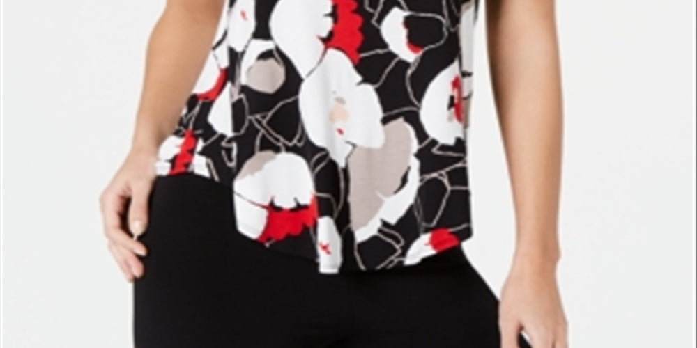 Alfani Women's Petite Printed Round-Hem T-Shirt Black Size Petite M