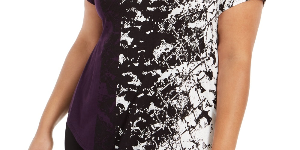 Alfani Women's Petite Printed Round-Hem T-Shirt Purple Size Petite