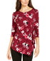 Alfani Women's Petite Printed Side-Tie Top Red Size Small