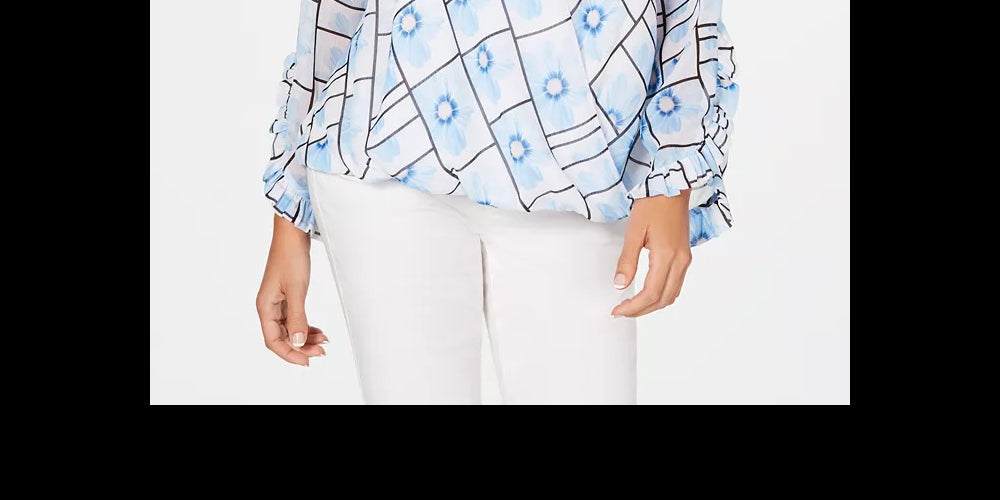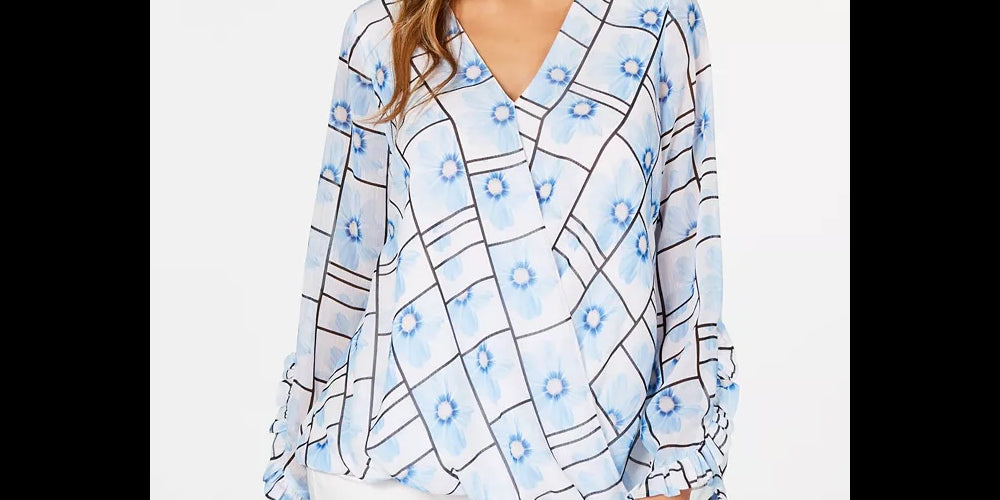 Approx. 23-3/4 long|Designed to fit and flatter 5'4 and under frame|Surplice neckline|Ruffled at cuffs|Polyester