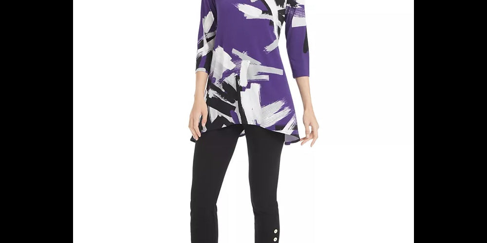 Alfani Women's Petite Printed Swing Top Purple Size X-Large