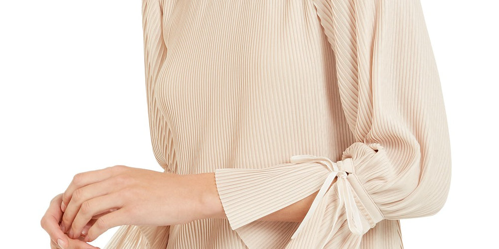 Designed to fit and flatter 5'4" and under|Mock-neckline; keyhole stay-put closure at back neck|Bell 3/4-sleeves|Embellished at neck; ribbon tie at sleeves|Polyester; lining: nylon|Hand wash