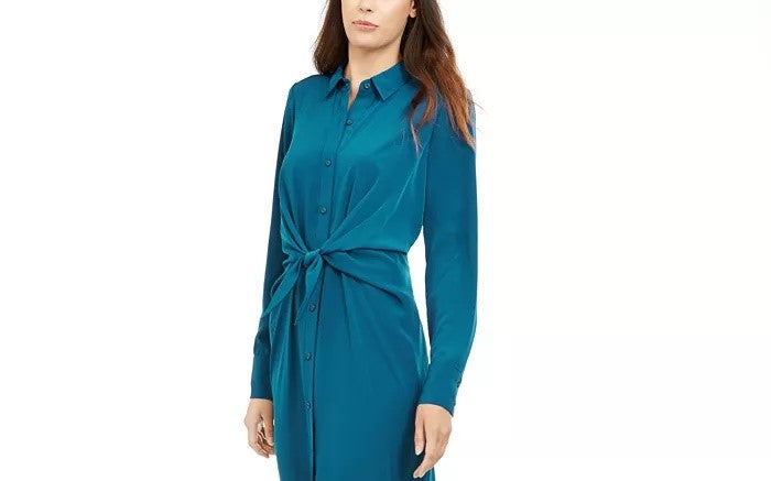 Alfani Women's Petite Tie-Front Shirt Dress Green Size 14 Petite