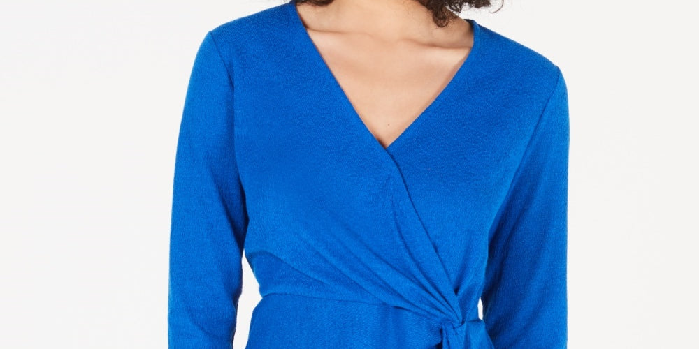 Alfani Women's Petite Twist-Side Faux-Wrap Top Blue PS