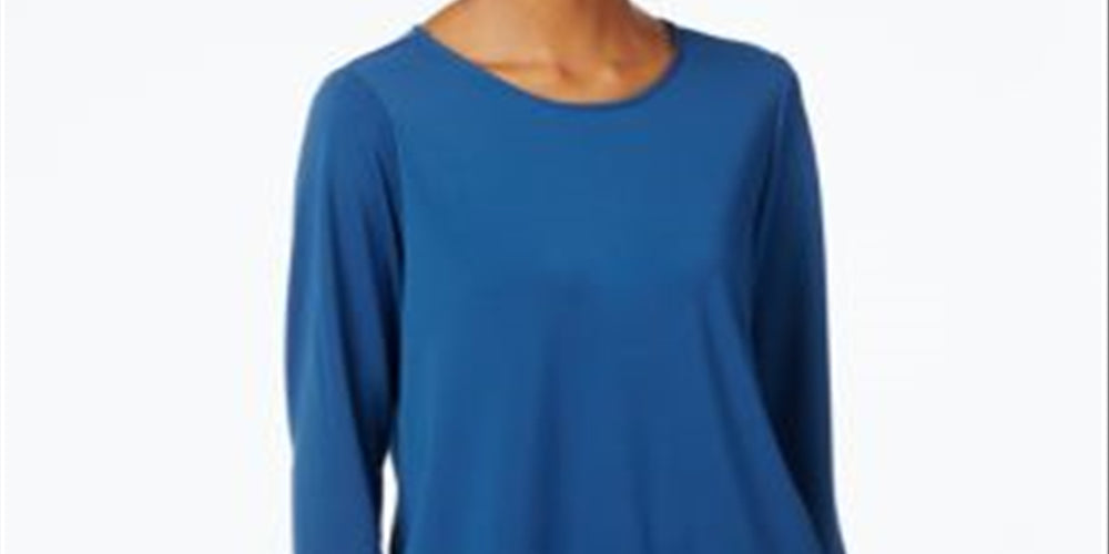 Alfani Womens Petites Layered Asymmetrical Casual Top -Blue Size Petite L