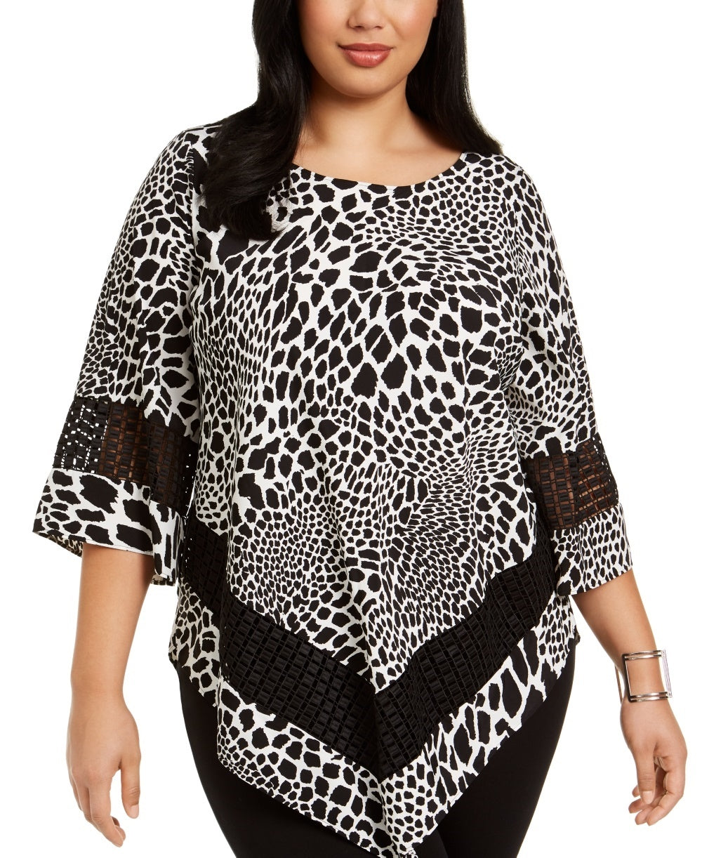 Alfani Women's Plus Size Printed Crochet Trim Top White Size 1X