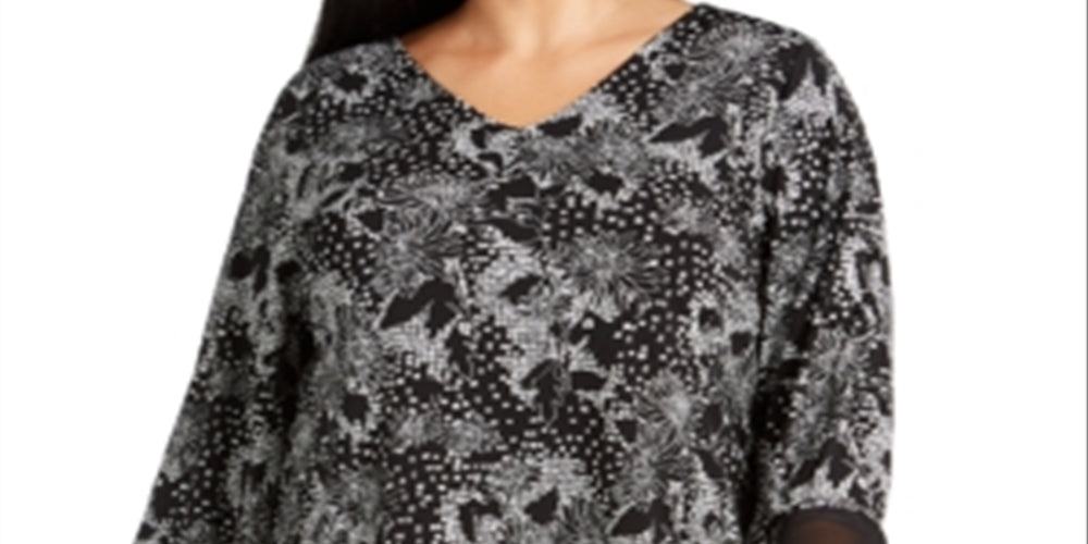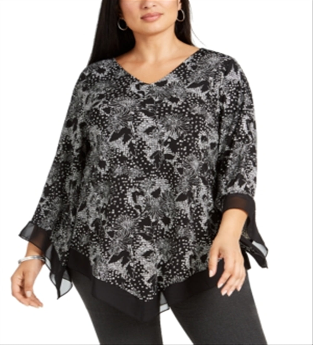 Alfani Women's Plus V Hem Blouse Black Size 0X