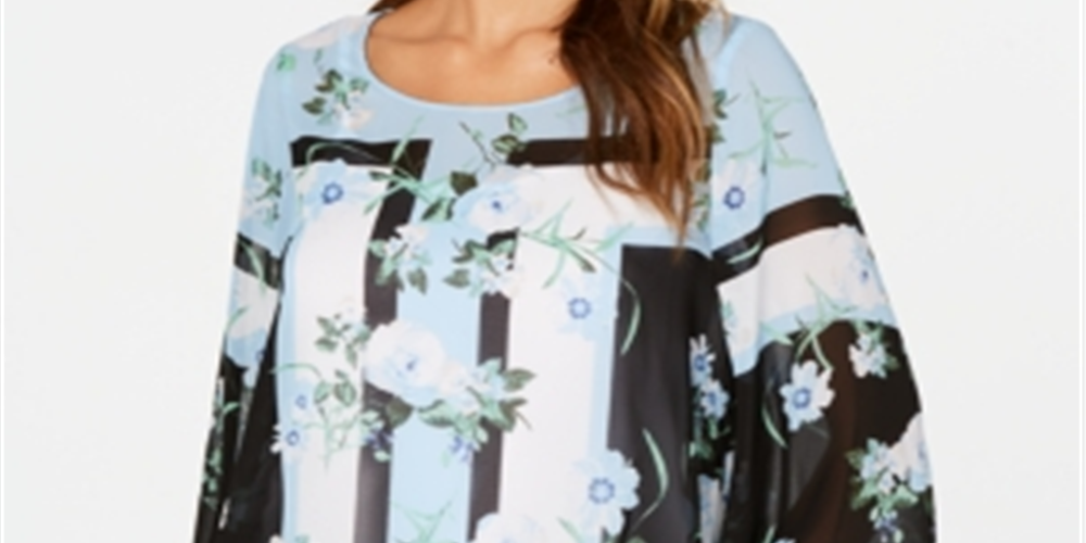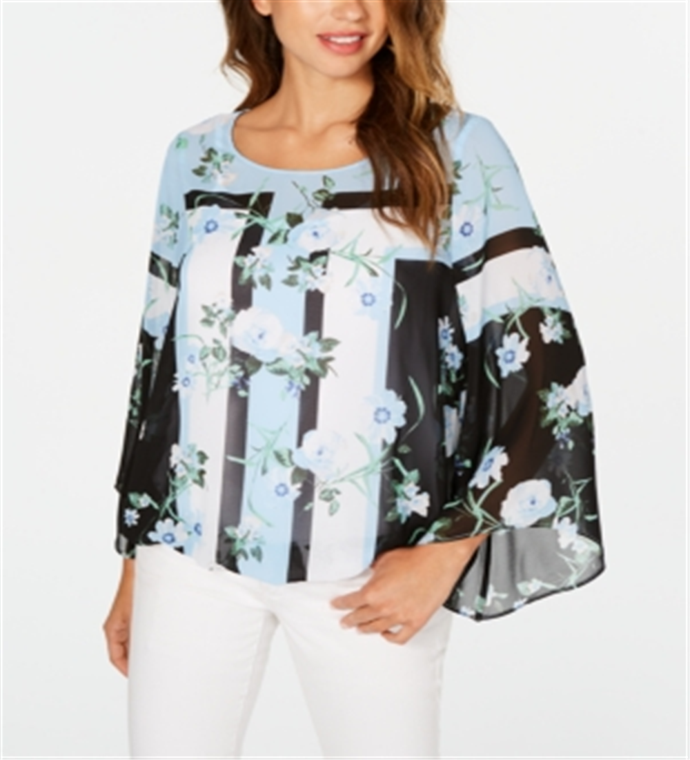 Ask a question about Alfani Women's Printed Angel Sleeve Blouse Blue Size Petite L