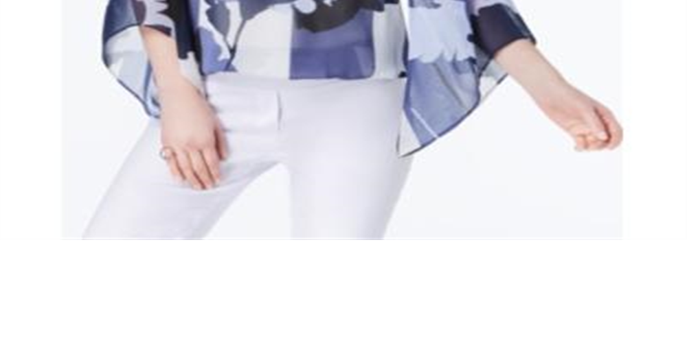 Alfani Women's Printed Angel Sleeve Top Blue Size Petite S/M