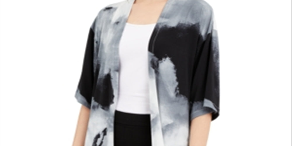 Alfani Women's Printed Cardigan Gray - Marbel Size Petite L
