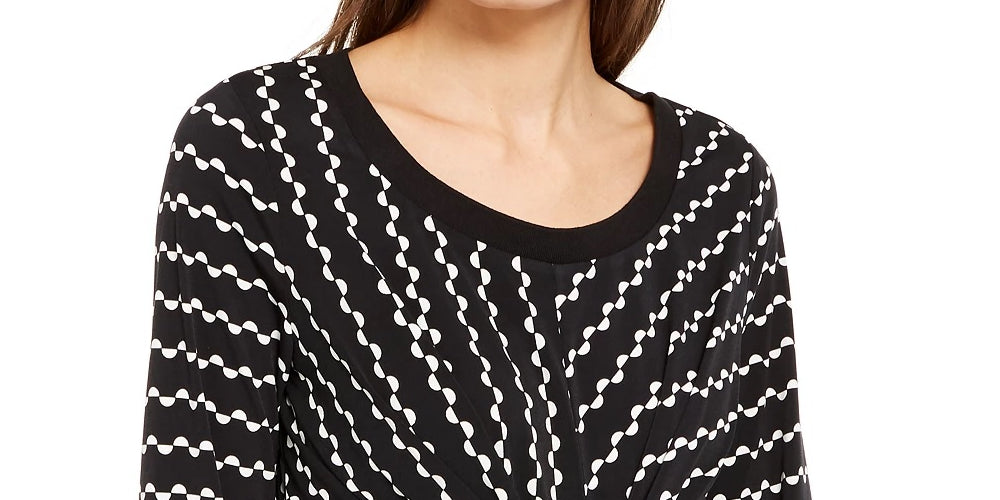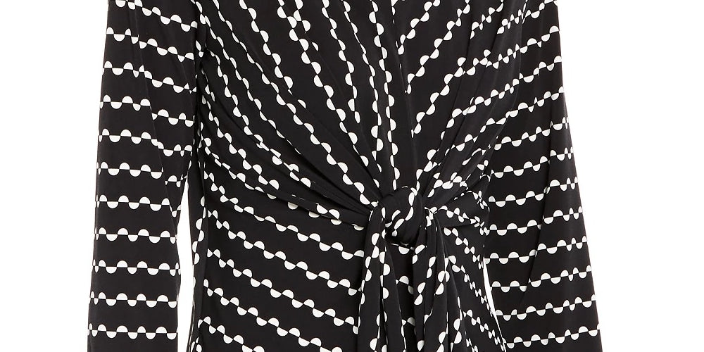 Alfani Women's Printed Knit Tie Front Top Black Size Medium